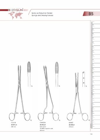 • • B&i ERGUN ® • -- 411'-ft""' , ... / Spanç ve Pansuman Pensleri B5 •l Sponge and Dressing Forceps . ,. .. 1 4�-.... ½ ½ ½ COLLIN CHERON EMMET B5 091.24 B5 092.24 B5 098.21 240 mm Açılı saplar 210mm Handles angled to side 240 mm 153