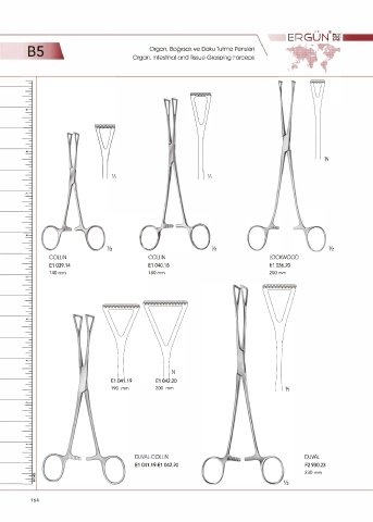 ERGUN oai ® B5 Organ, lntestinal and Tissue Grasping Forceps Organ, Bağırsak ve Doku Tutma Pensleri 1/ı 1/ı 1/ı ½ ½ COLLIN LOCKWOOD E1 040.18 E1 036.20 180mm 200mm 200 mm DUVAL-COLLIN DUVAL E1 041.19-E1 042.20 F2 930.23 230 mm 164
