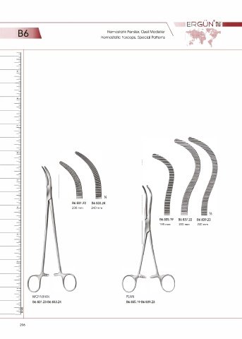 ERGUN oai ® B6 Hemostatic Forceps, Special Patterns \ Hemostatik Pensler. Özel Modeller 1/ı B6 831.23 B6 833.24 230 mm 240 mm 1/ı B6835.19 B6837.22 B6839.23 195 mm 220 mm 230 mm MOYNIHAN PEAN B6 831.23-B6 833.24 B6 835.19-B6 839.23 206
