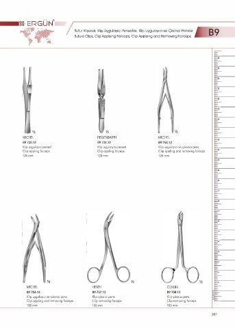 •l Sütur Klipsleri, Klip Uygulayıcı Pensetler, Klip Uygulayıcı ve Çıkarıcı Pensler B9