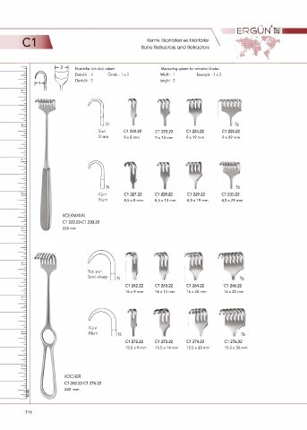 1-2-1 Ekartörler için ölçü sistemi Measuring system for retractor blades