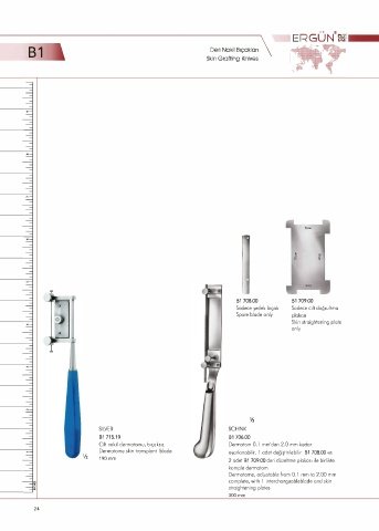 Dermatome skin transplant blade ayarlanabilir, 1 adet değiştirilebilir B1 708.00 ve