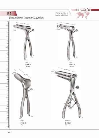 ERGUN oai ® E1 Rectaı Retractors \ Rektal Spekulum GENEL CERRAHİ - ABDOMINAL SURGERY ı-.. 7 7 mm SIMS SIMS E1 820.16 E1 821.16 160 mm 160 mm �mm ½ PRATT MATHIEU E1 831.20 E1 843.21 205 mm 215 mm 466