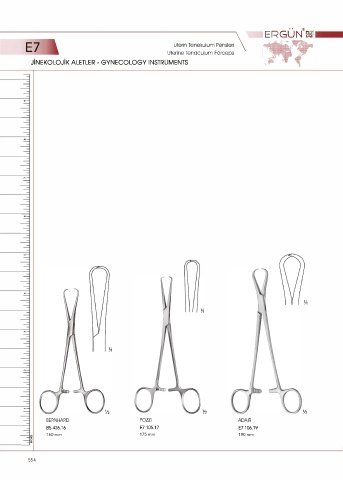 .. ® ERGUN oai • E7 Uterine Tenaculum Forceps \ Uterin Tenekulum Pensleri JİNEKOLOJİK ALETLER - GYNECOLOGY INSTRUMENTS ½ ½ BERNHARD POZZI ADAIR B5 426.16 E7 105.17 E7106.19 160mm 175 mm 190mm 554