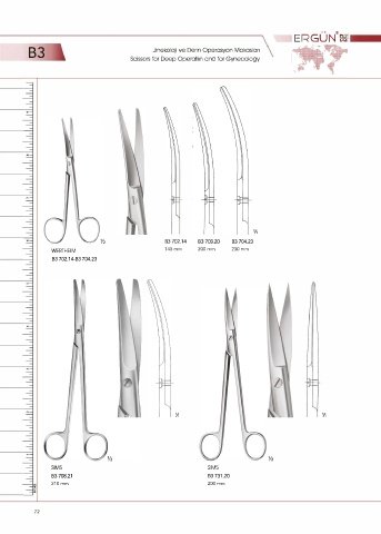 ERGUN oai ® B3 Scissors for Deep Operatiın and for Gynecology Jinekoloji ve Derin Operasyon Makasları 1/ı B3 702.14 B3 703.20 B3 704.23 WERTHEIM 145 mm 200mm 230 mm B3 702.14-B3 704.23 1/ı 1/ı ½ SIMS SIMS B3 708.21 B3 731.20 210mm 200 mm 72