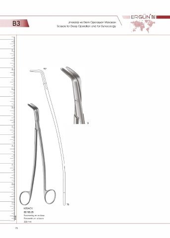 ERGUN oai ® B3 Scissors for Deep Operation and for Gynecology Jinekoloji ve Derin Operasyon Makasları 1/ı ½ KIEBACK B3 765.35 Parametriyum makası Parametrium scissors 350 mm 76